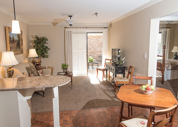 Twinbrook Assisted Living offers an intimate setting where neighbors become friends. Our community features 60 attractive apartments across two floors, easily accessible by two elevators. Every apartment has been thoughtfully updated with high-end finishes, including granite countertops in kitchens and bathrooms, stainless-steel appliances, and modern vinyl flooring.